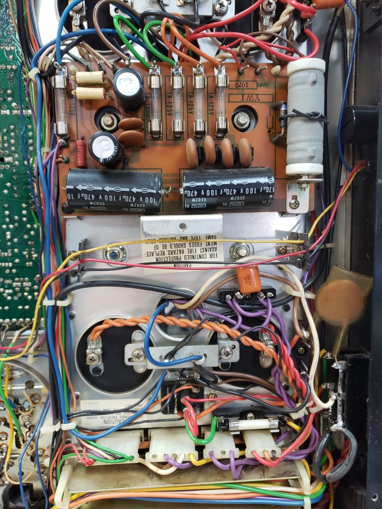 As these wonderful vintage units keep getting older, there are age related and prior work related risks. The adhesion of the traces to the circuit boards can weaken with heat and age. Some units really don’t like to keep those traces down and others have seen techs with overly hot soldering irons or excessive dwell on components. Trace repair is a matter of life working on these and something that we have plenty of practice in. The most extreme so far has been reglassing and retracing of a very burnt power board, the resin had turned to carbon through the entire thickness for areas that exceeded half dollar size areas.